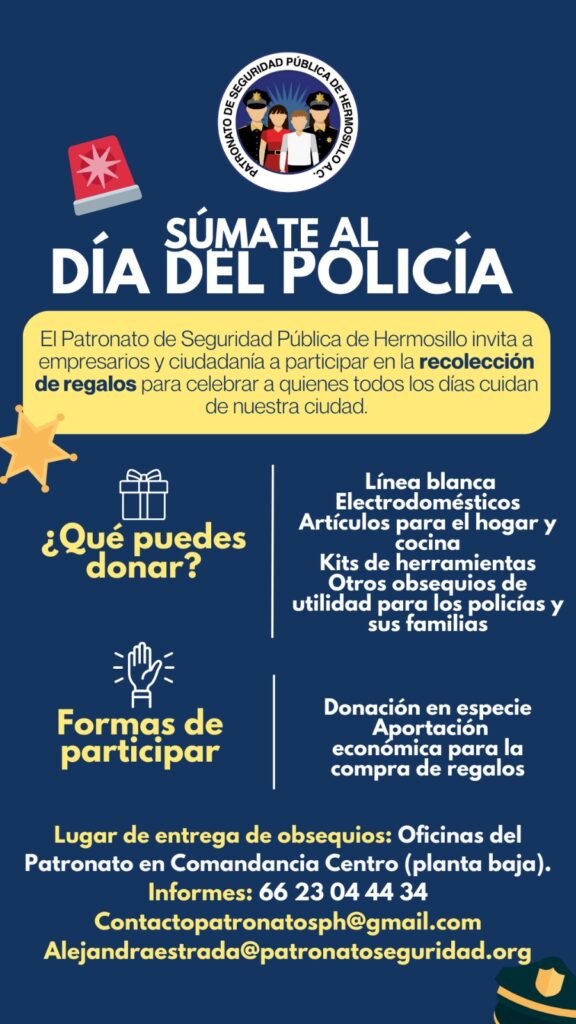 Fecha de publicación: Noviembre de 2025 El Patronato de Seguridad Pública de Hermosillo, A.C. invita a empresarios, comercios y ciudadanía