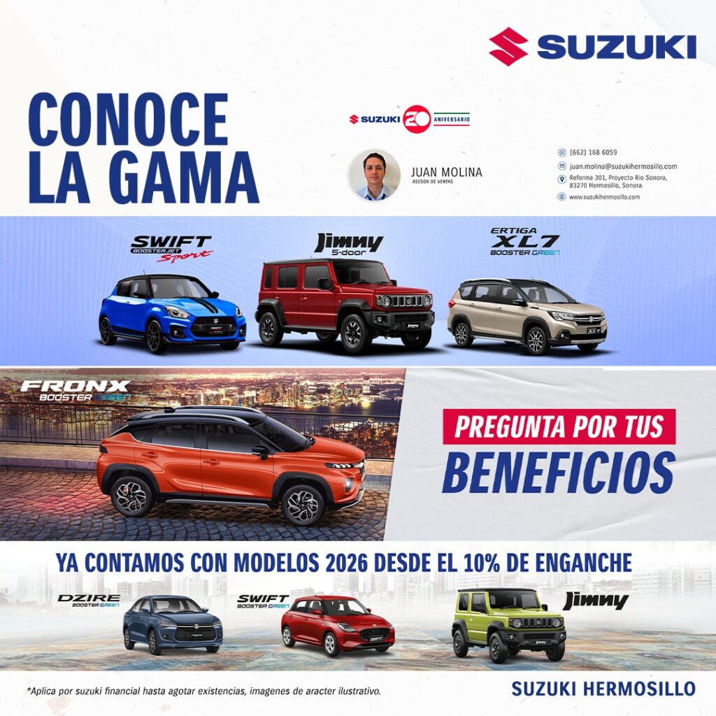 Durante este mes y de manera continua, Suzuki Hermosillo ofrecerá un descuento preferencial para los elementos, además de promociones especiales que se actualizarán mes con mes.