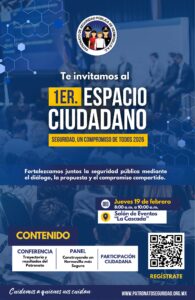 Hermosillo, Sonora.– Con el objetivo de fortalecer la seguridad pública mediante la participación activa de la sociedad, el Patronato de Seguridad Pública de Hermosillo, A.C. anunció la realización del 1er. Espacio Ciudadano: Seguridad, un compromiso de todos 2026, un encuentro que reunirá a representantes del sector empresarial, organizaciones de la sociedad civil, autoridades y ciudadanía.